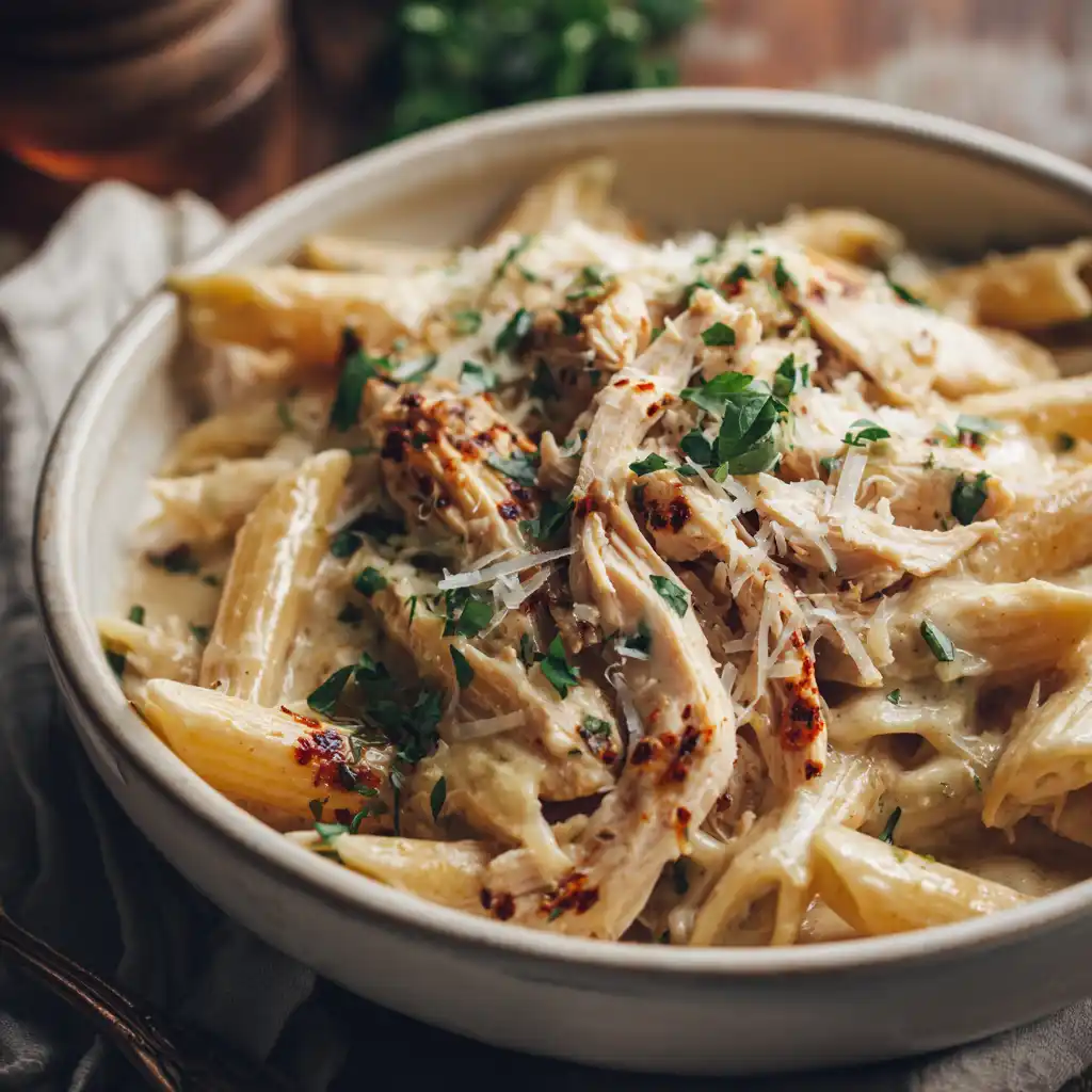 To make this creamy chicken pasta crockpot recipe lighter, swap heavy cream for evaporated milk or low-fat Greek yogurt. You can also use whole-grain pasta or chickpea pasta for added fiber.