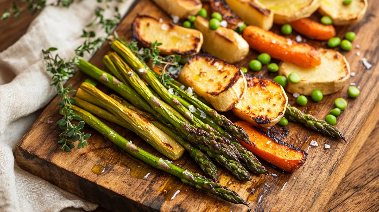 So, I always find roasting spring vegetables to be the best way to keep their nutritional goodness intact. If you enjoyed this, you might also like Roasted Beet Sweet Potato. Unlike boiling, which can strip away vitamins and minerals, roasting helps lock in their nutrients. You see, when you roast veggies like asparagus and young carrots, you’re not just cooking them—you’re preserving their health benefits too.